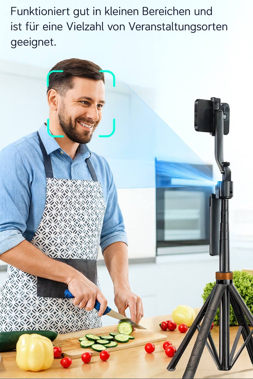 Die innovative Gesichtserkennungstechnologie sorgt dafür, dass die Kamera automatisch auf dich fokussiert bleibt. Egal, wie du dich bewegst, das Stativ passt die Ausrichtung an, sodass du immer im Mittelpunkt deiner Aufnahmen bist.